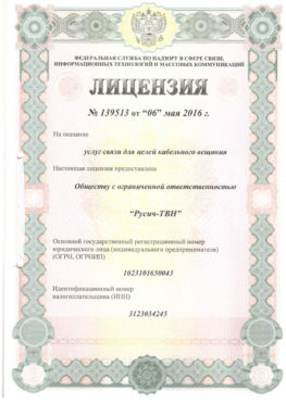 Лицензии и благодарности | Русич-ТВН